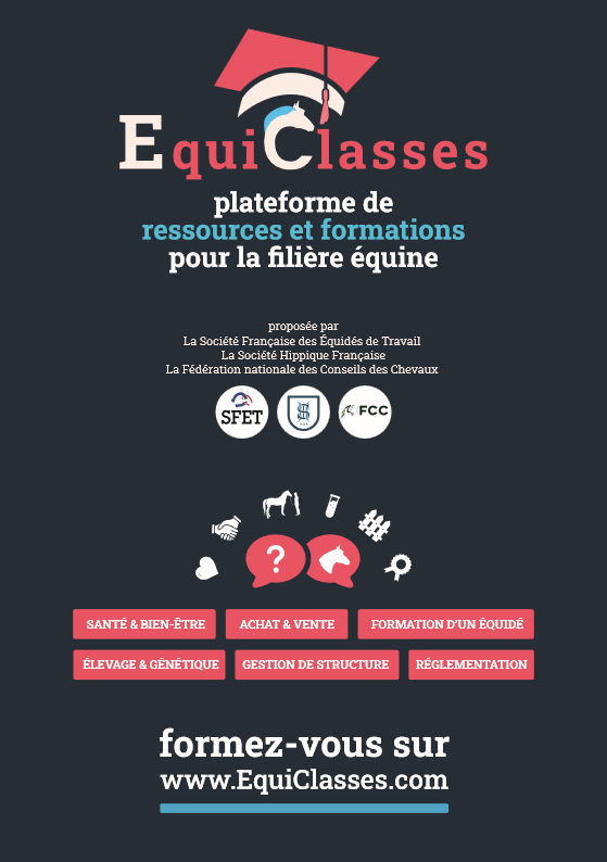 EquiClasses est la plateforme officielle de ressources et de formations dédiée à toute la filière équine. Elle a été créée pour permettre à chacun allant du particuliers, professionnels, éleveurs, enseignants au détenteurs d’accéder facilement à des contenus fiables, pédagogiques et validés par les organismes de référence du secteur.